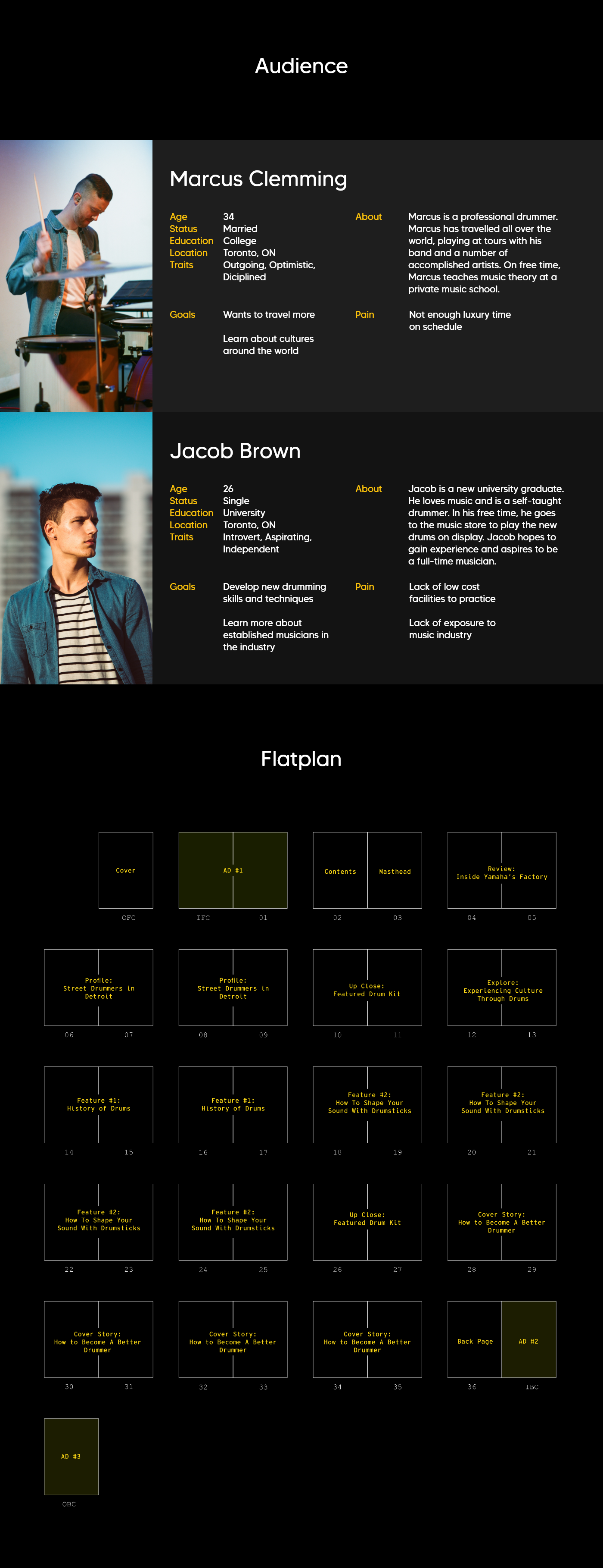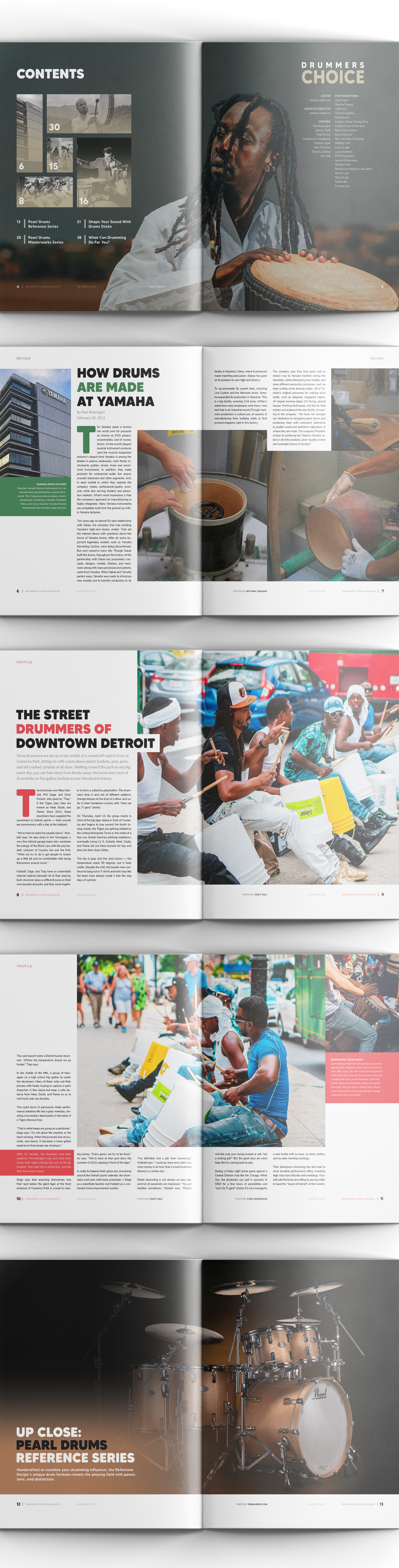 As the editor and designer for Drummers Choice magazine’s first issue, my goal was to create a visually dynamic publication catered specifically to drummers and percussionists.